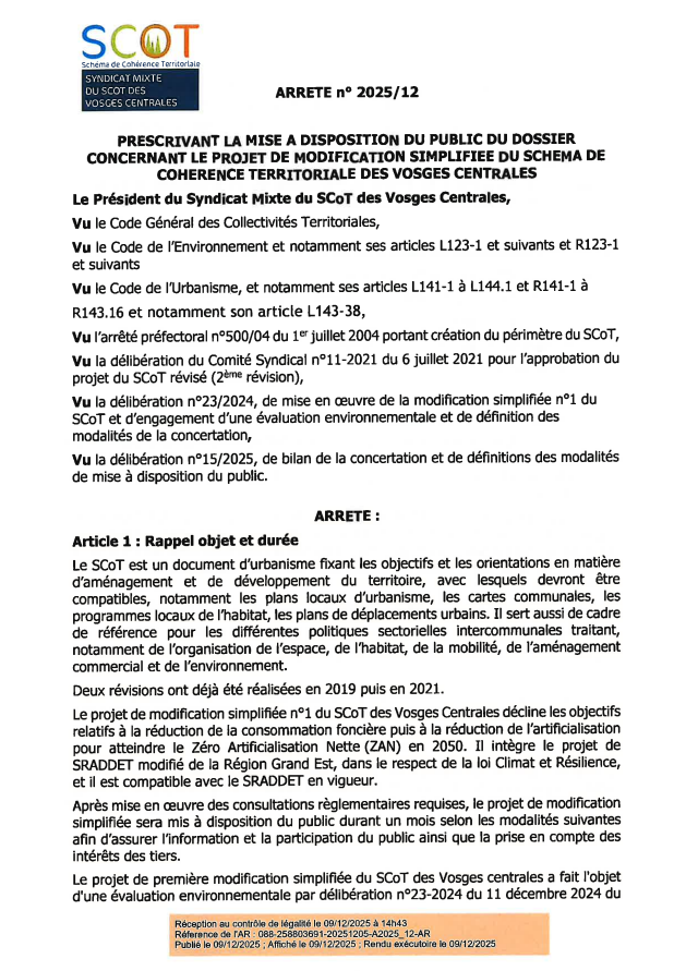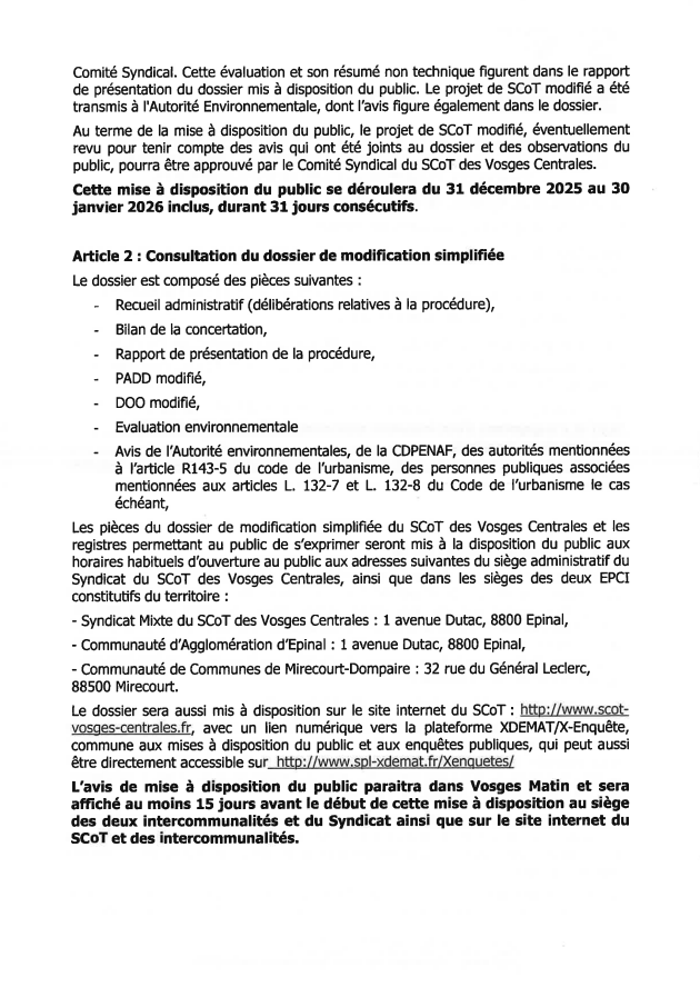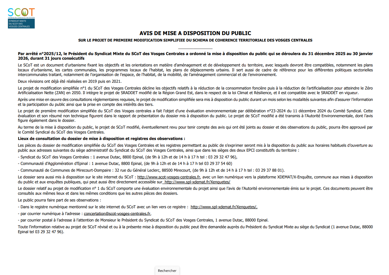 Modification simplifiée du SCoT : : Avis de mise à disposition du public